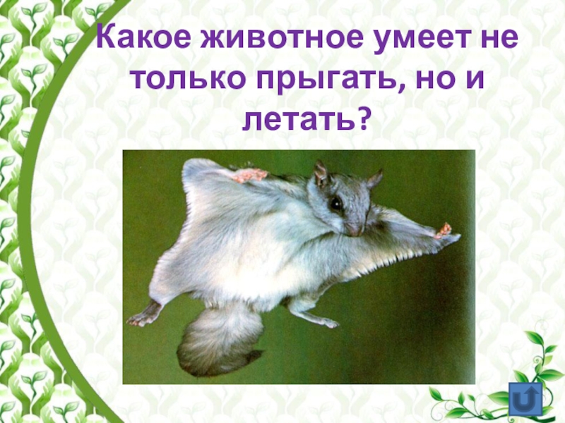 Слайд 9Какое животное умеет не только прыгать, но и летать?