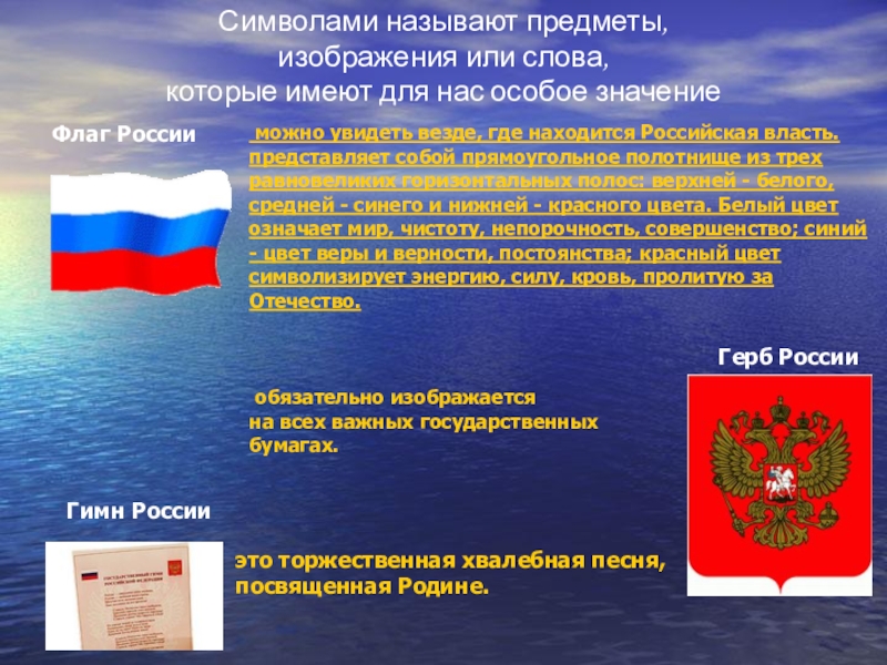 . Золотой цвет означает также богатство, изобилие и плодородие. Синий цвет означает также понятие, как слава, честь, верность и искренность.