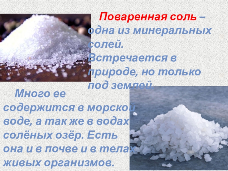 Много ее содержится в морской воде, а так же в водах солёных озёр. Есть она и в почве и в телах живых организмов.