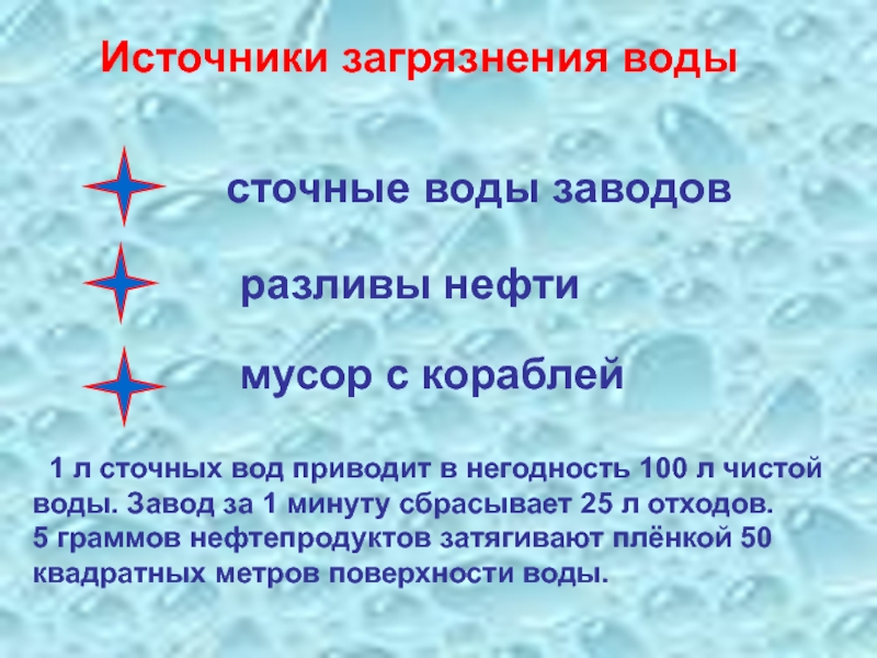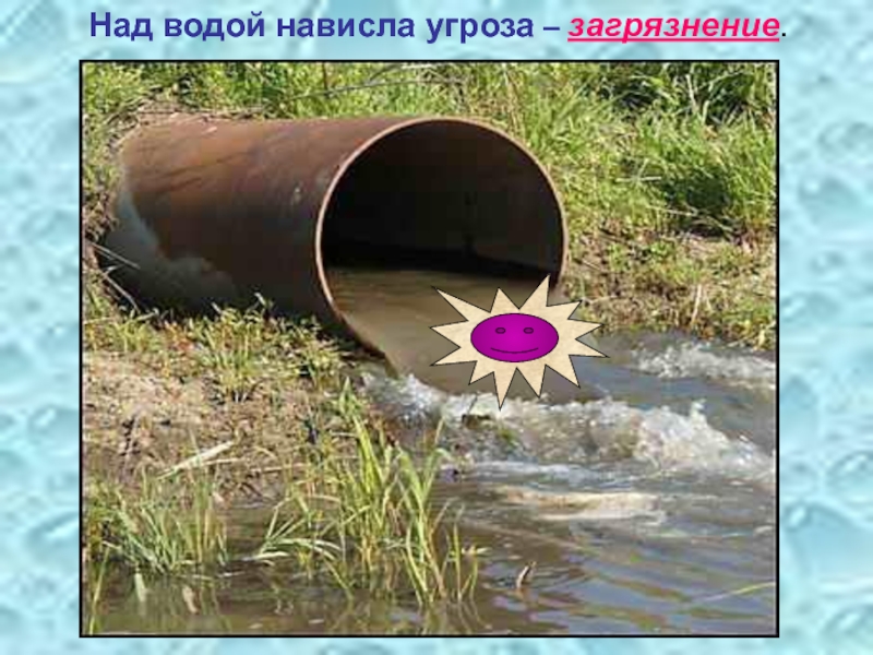 Слайд 24 Над водой нависла угроза – загрязнение.