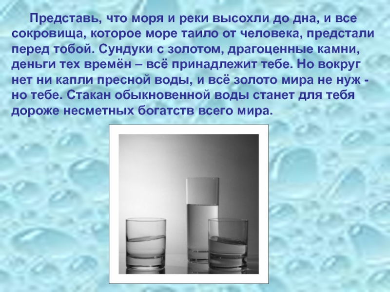 Слайд 14 Представь, что моря и реки высохли до дна,