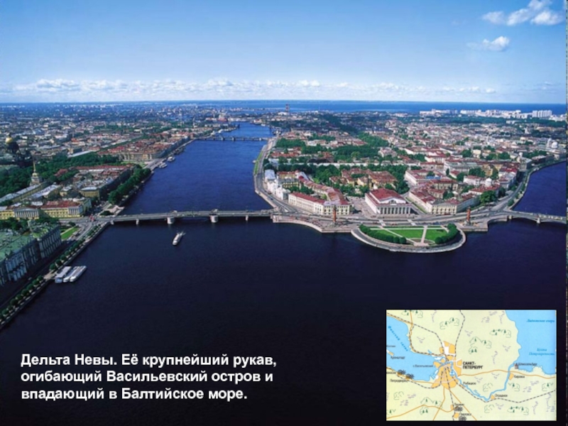 Слайд 6Дельта Невы. Её крупнейший рукав, огибающий Васильевский остров и впадающий в