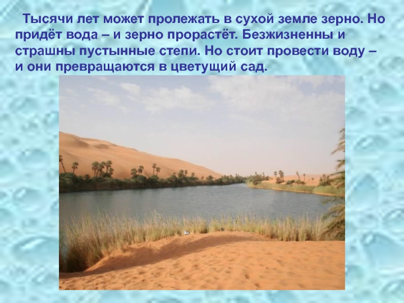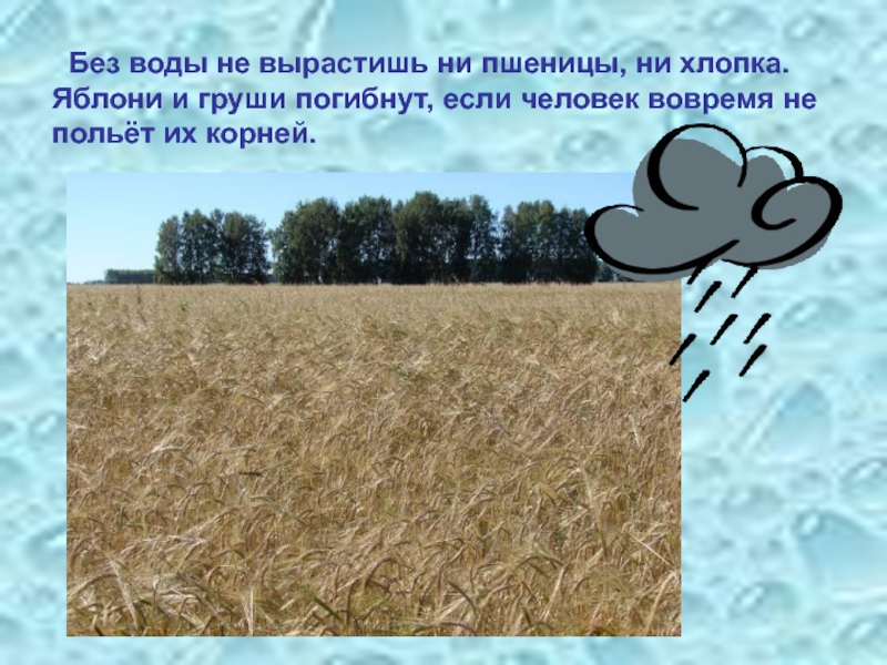 Слайд 12 Без воды не вырастишь ни пшеницы, ни хлопка.