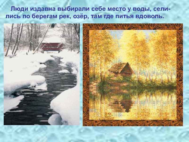 Слайд 11 Люди издавна выбирали себе место у воды, сели-