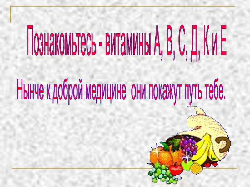 Познакомьтесь - витамины А, В, С, Д, К и Е Нынче к доброй медицине они покажут путь тебе.