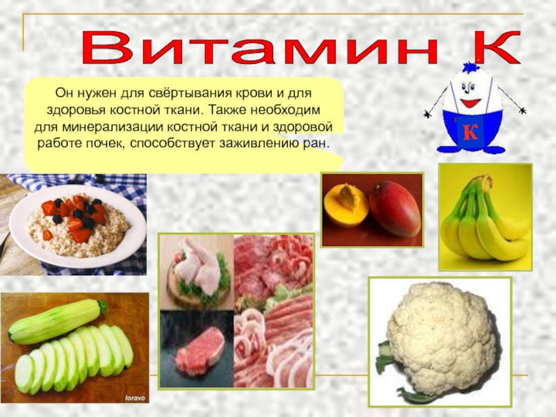 Витамин К КОн нужен для свёртывания крови и для здоровья костной ткани. Также необходим для минерализации костной