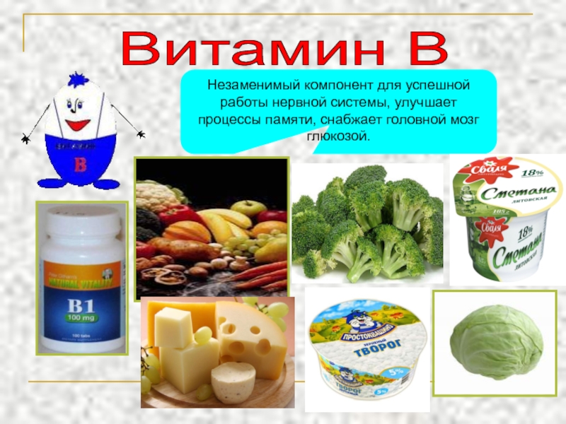 Витамин В Незаменимый компонент для успешной работы нервной системы, улучшает процессы памяти, снабжает головной мозг глюкозой.