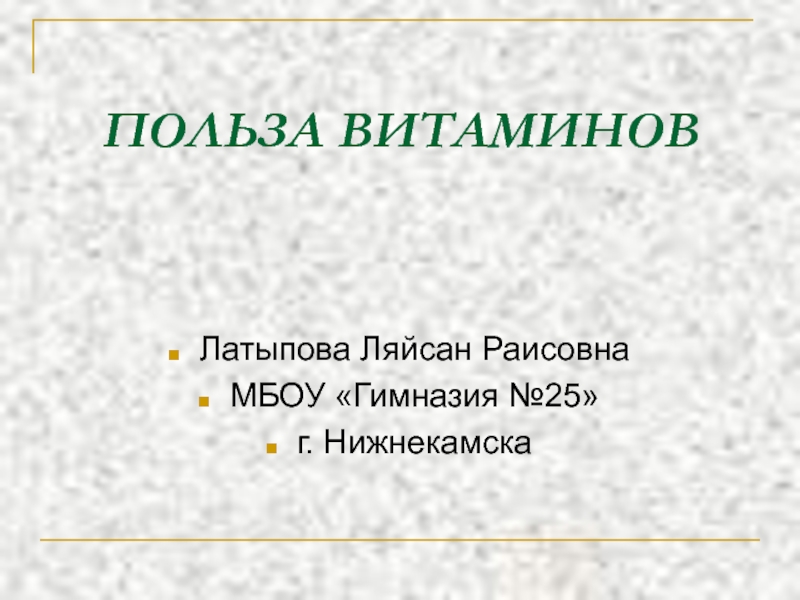 ПОЛЬЗА ВИТАМИНОВЛатыпова Ляйсан РаисовнаМБОУ «Гимназия №25»г. Нижнекамска
