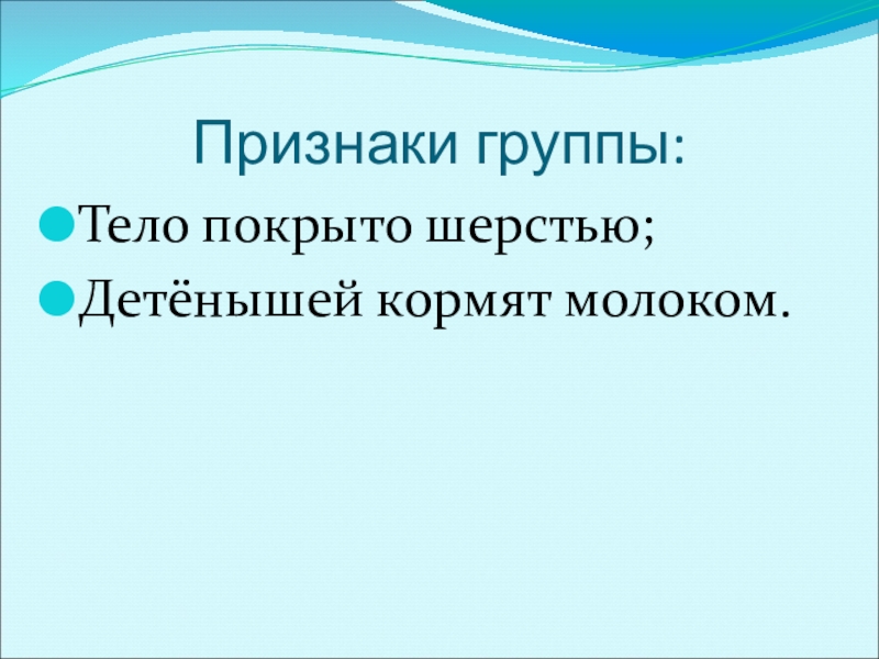 Признаки группы:Тело покрыто шерстью;Детёнышей кормят молоком.