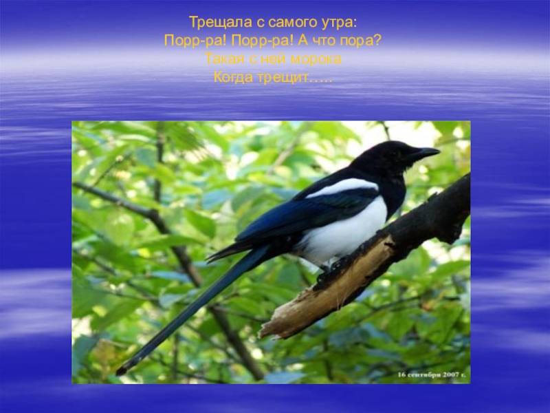 Слайд 7Трещала с самого утра: Порр-ра! Порр-ра! А что пора? Такая с ней морока Когда