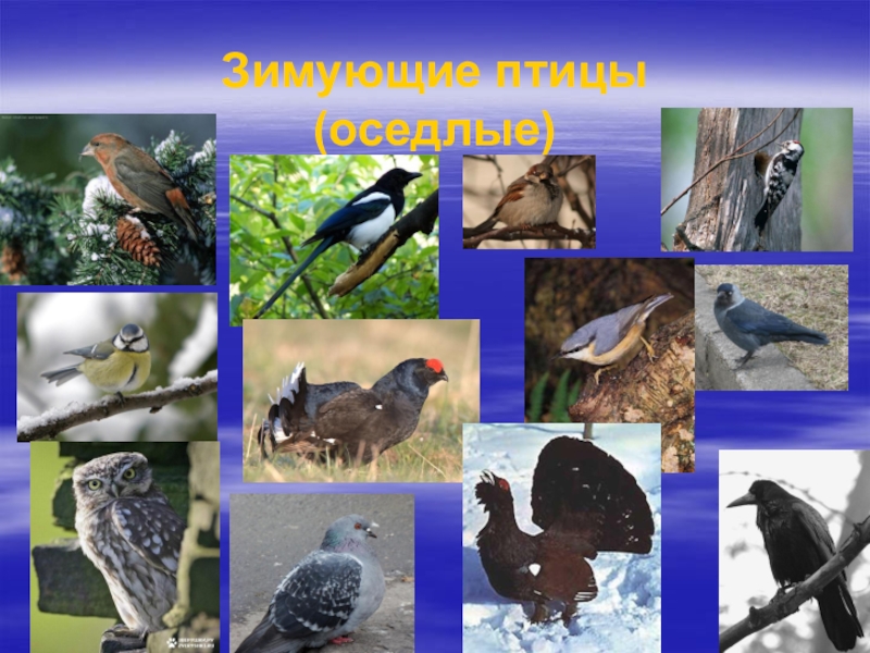 Слайд 9Зимующие птицы (оседлые)