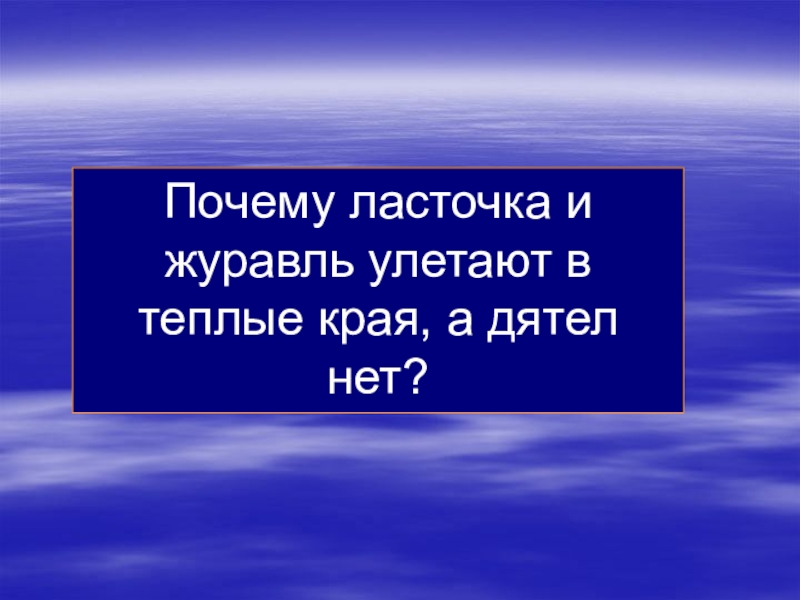 Слайд 19Почему ласточка и журавль улетают в теплые края, а дятел нет?