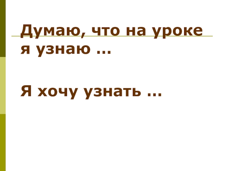 Думаю, что на уроке я узнаю …Я хочу узнать …