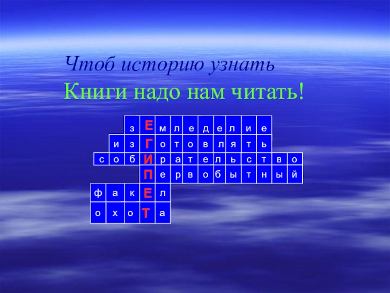 ЕмлееилзедизГоотвльтяоосбИратлеьвстйПыервботынлкЕфааТохоЧтоб историю узнатьКниги надо нам читать!
