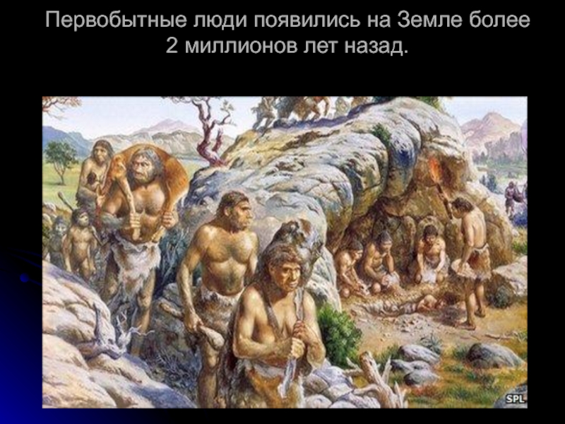 Слайд 5Первобытные люди появились на Земле более 2 миллионов лет назад.