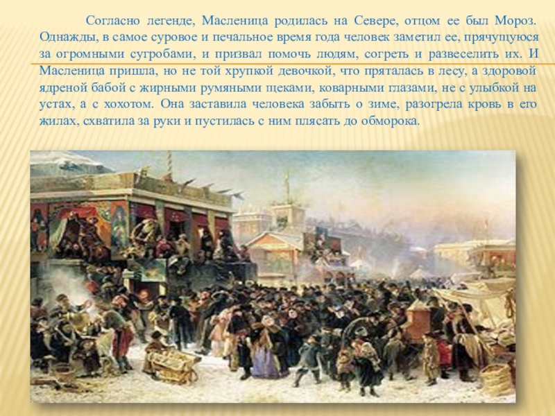 Слайд 3 Согласно легенде, Масленица родилась на