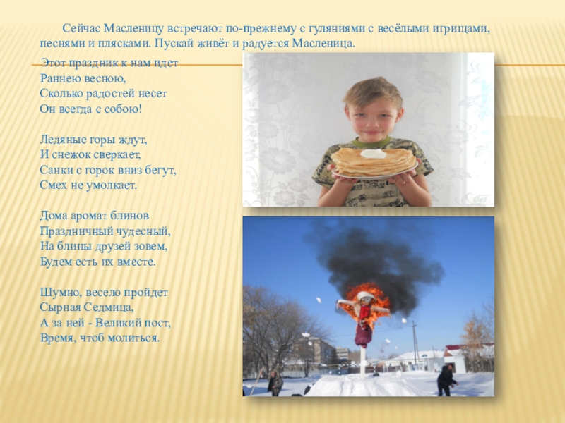 Слайд 20 Сейчас Масленицу встречают по-прежнему