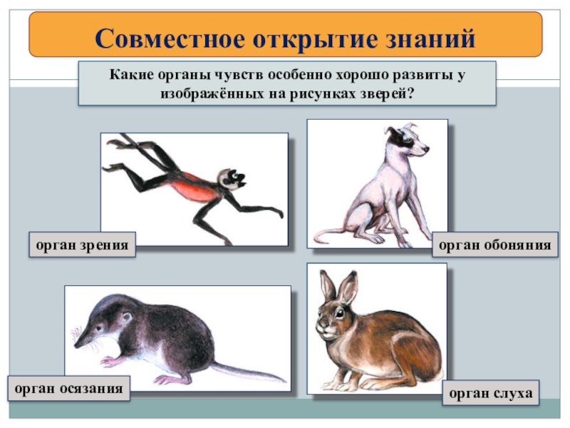 Органы чувств млекопитающих хорошо развиты.Органы чувств помогают зверям находить добычу или пищу, ориентироваться, узнавать друг друга, определять опасность.