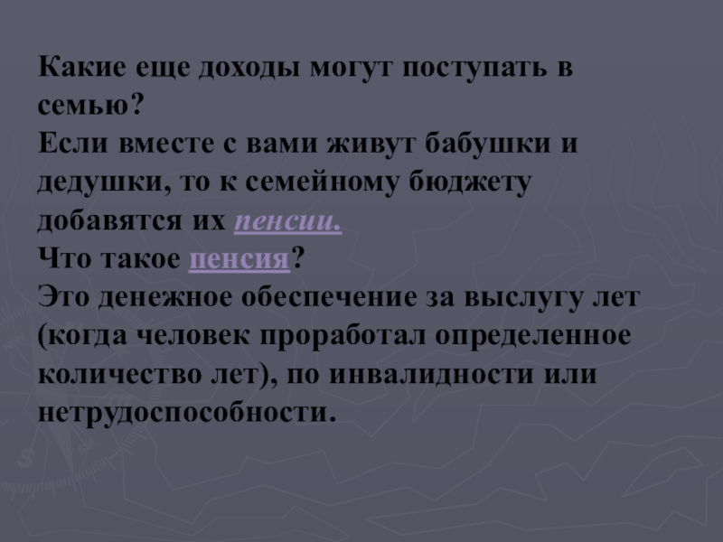 Слайд 6Какие еще доходы могут поступать в семью?