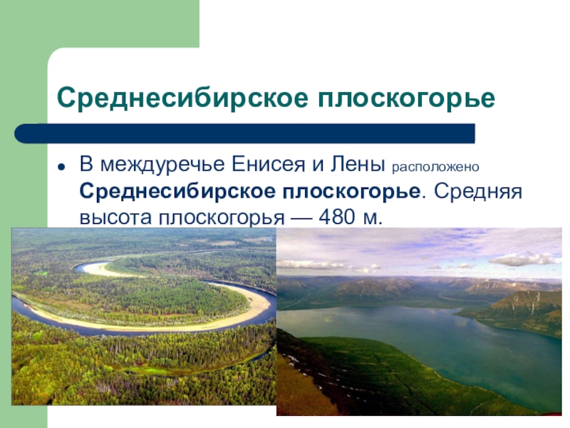 В междуречье Енисея и Лены расположено Среднесибирское плоскогорье. Средняя высота