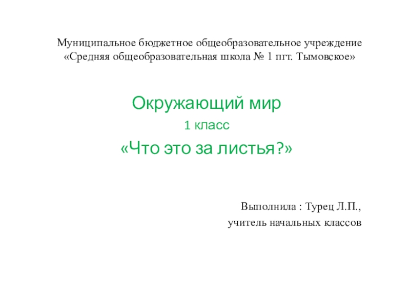 Муниципальное бюджетное общеобразовательное учреждение «Средняя общеобразовательная школа № 1 пгт. Тымовское»Окружающий мир 1 класс «Что это за