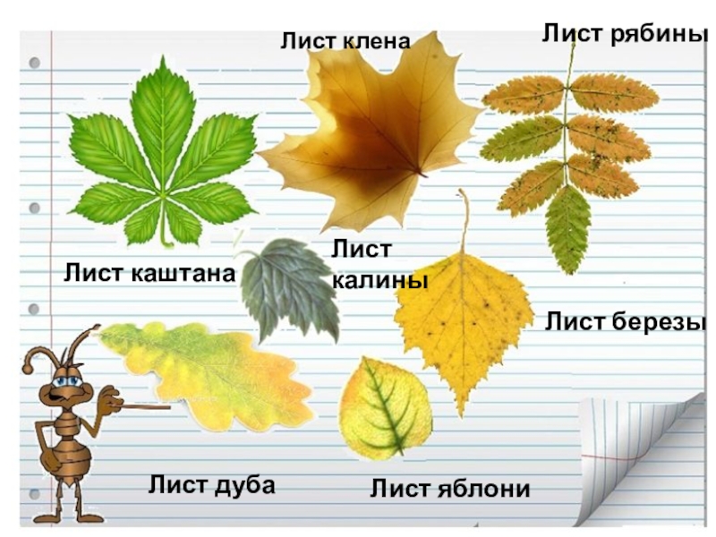 Лист клена Лист рябины Лист каштанаЛисткалиныЛист березыЛист дубаЛист яблони
