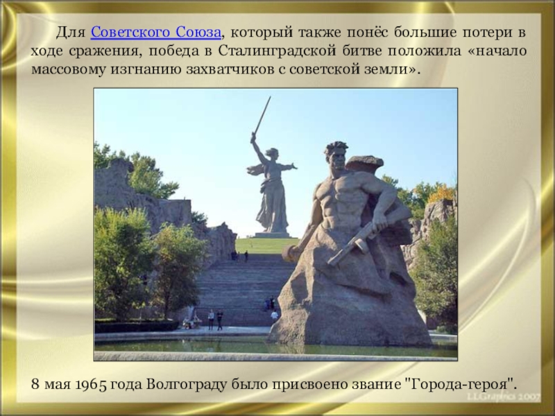 8 мая 1965 года Волгограду было присвоено звание "Города-героя".