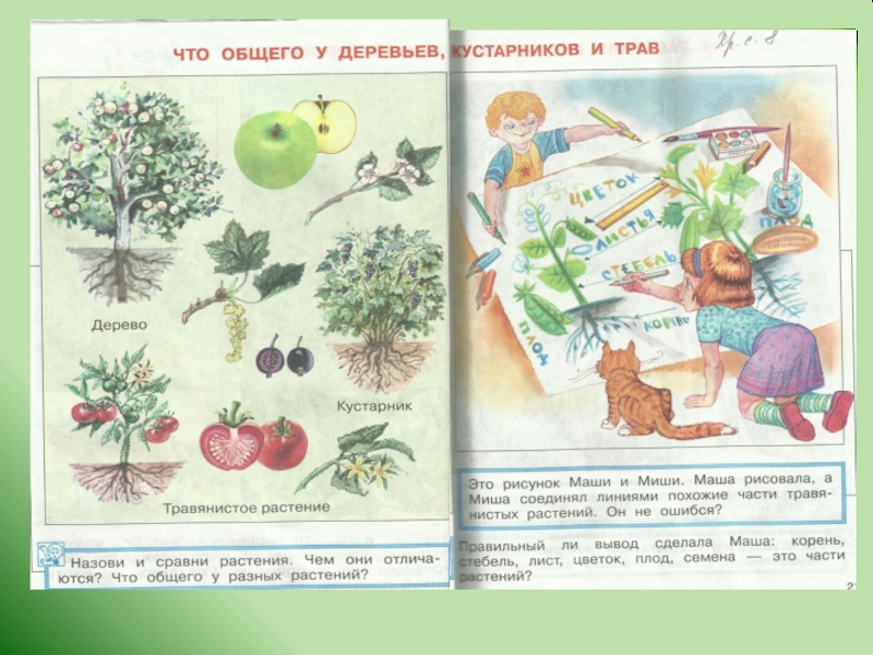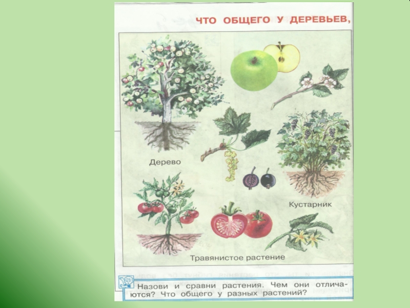 Презентация, доклад к уроку окружающего мира по теме Что общего у деревьев, кустарников и трав (1 класс)