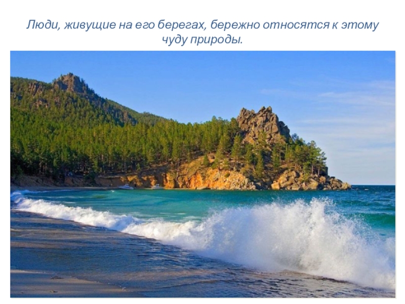 Слайд 5Люди, живущие на его берегах, бережно относятся к этому чуду природы.