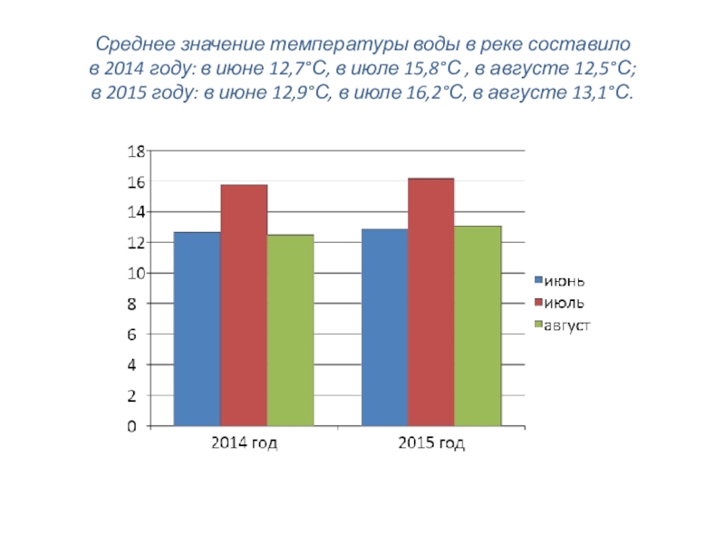 Слайд 13Среднее значение температуры воды в реке составило