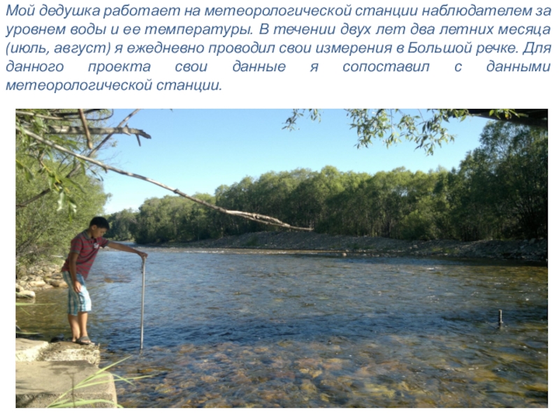 Слайд 10Мой дедушка работает на метеорологической станции наблюдателем за уровнем воды и