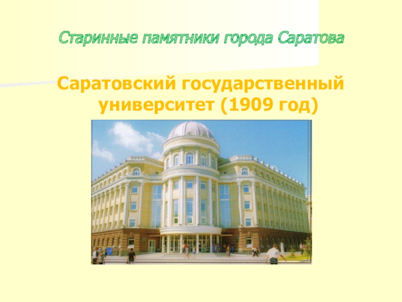 Старинные памятники города СаратоваСаратовский государственный университет (1909 год)