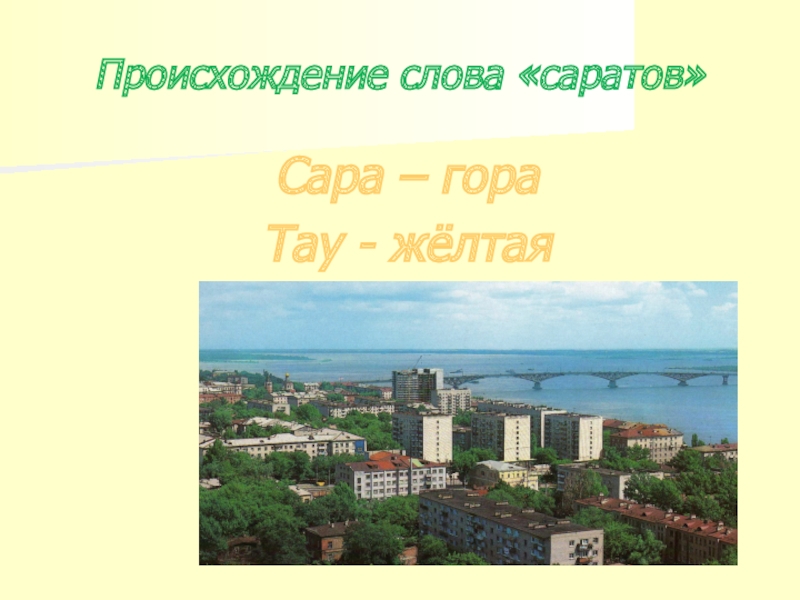 Происхождение слова «саратов»Сара – гораТау - жёлтая