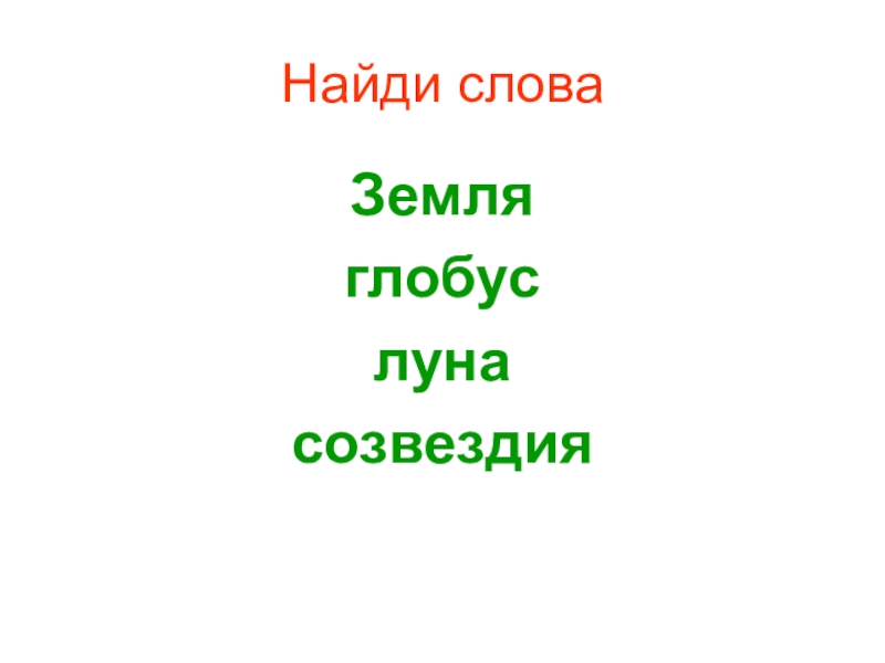 Найди словаЗемляглобуслунасозвездия