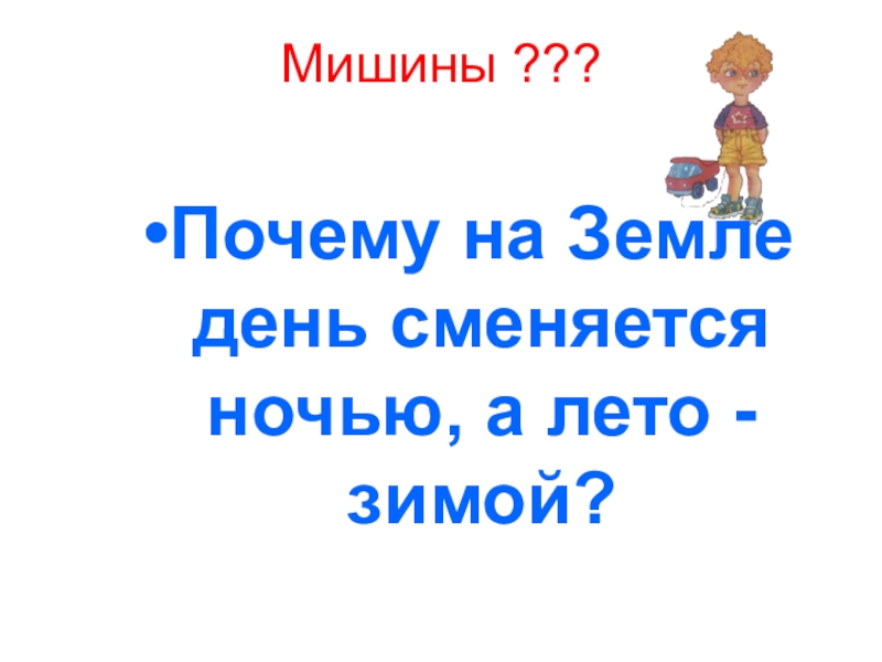 Мишины ???Почему на Земле день сменяется ночью, а лето - зимой?