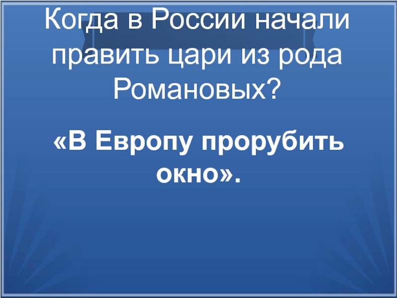 Когда в России начали править цари из рода Романовых?«В Европу прорубить окно».