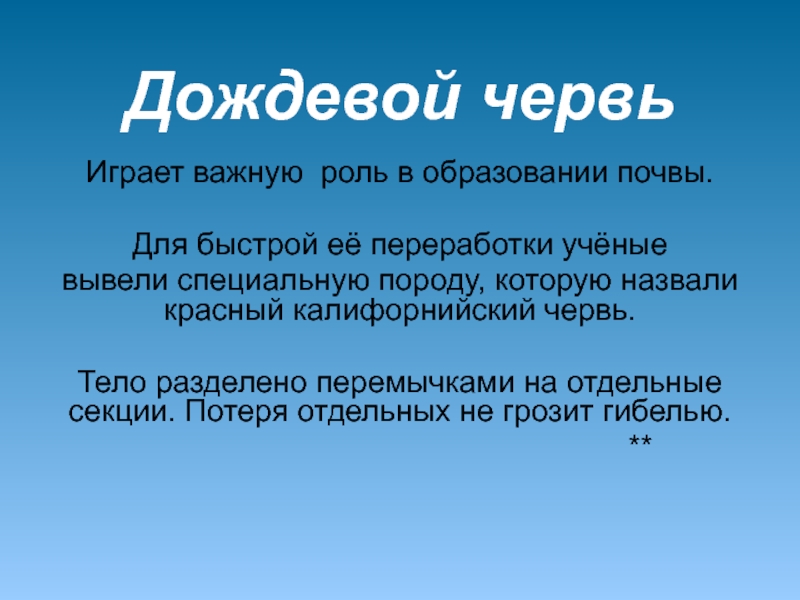 Тело разделено перемычками на отдельные секции. Потеря отдельных не грозит гибелью.