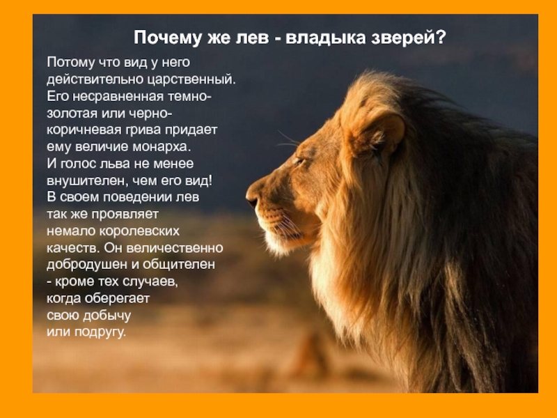 Почему же лев - владыка зверей?