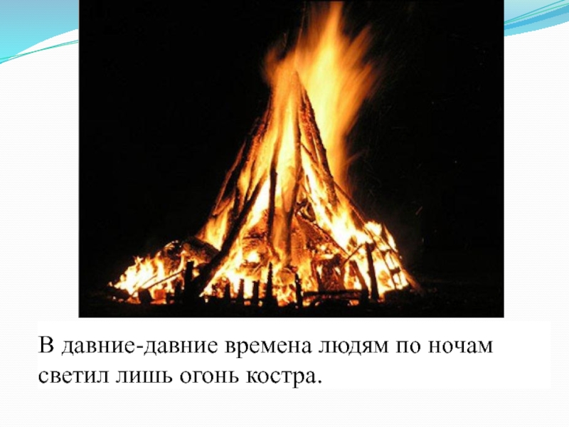 Слайд 4В давние-давние времена людям по ночам светил лишь огонь костра.