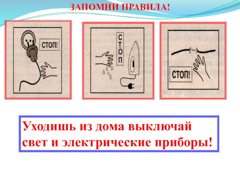 ЗАПОМНИ ПРАВИЛА!Уходишь из дома выключай свет и электрические приборы!