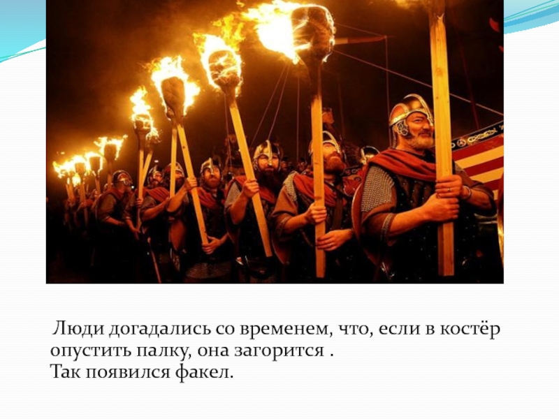 Слайд 5 Люди догадались со временем, что, если в костёр опустить
