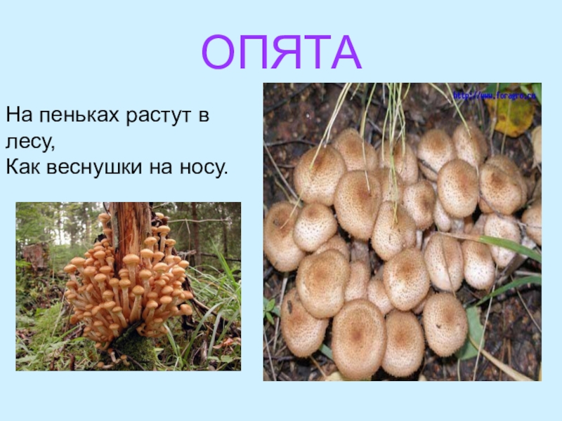 ОПЯТАНа пеньках растут в лесу, Как веснушки на носу.