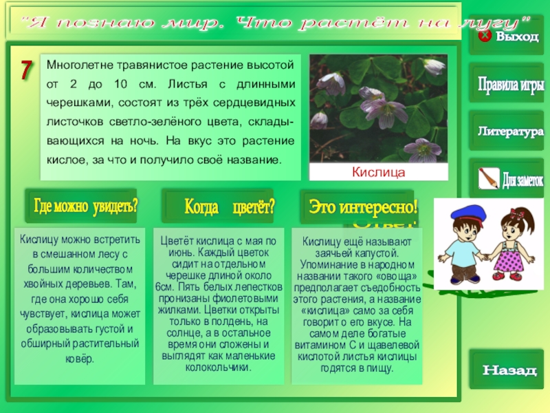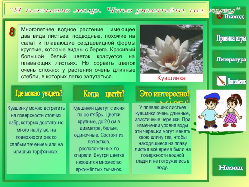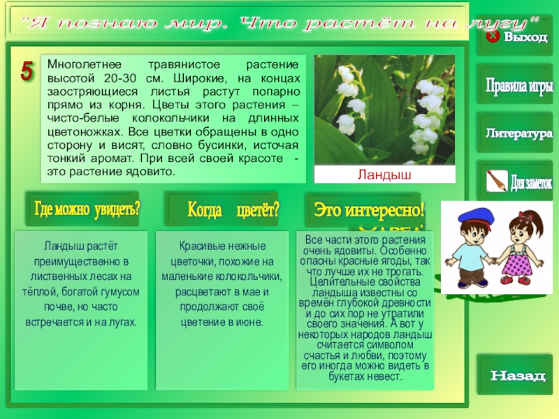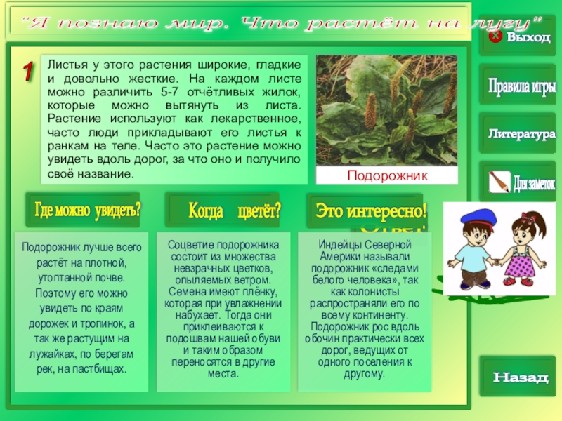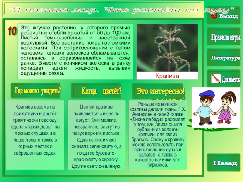 6) Дополнительную информацию об этом растении прочитай, используя следующие кнопки: