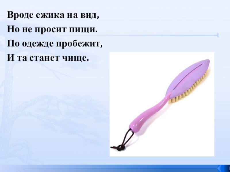 Вроде ежика на вид,  Но не просит пищи. По одежде пробежит,  И та станет