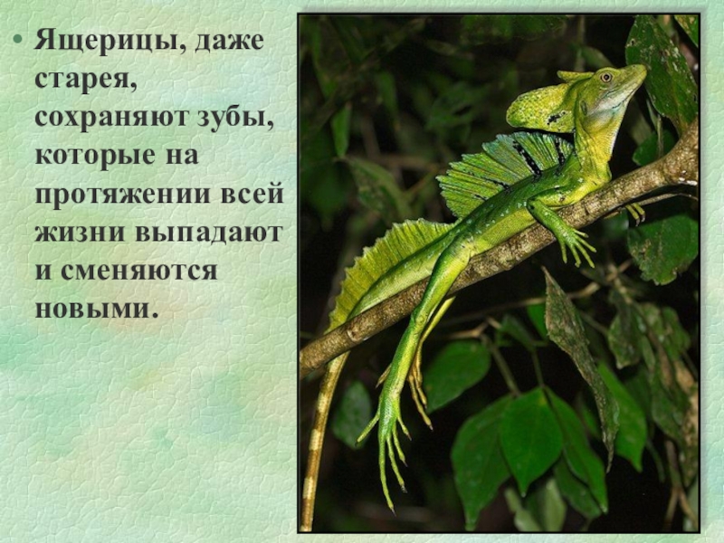 Слайд 9Ящерицы, даже старея, сохраняют зубы, которые на протяжении всей жизни выпадают