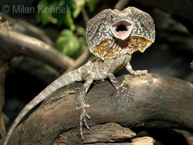 Например, австралийская плащеносная ящерица внезапно разевает пасть и поднимает широкий яркий воротник, образованный кожной складкой на шее. Помогает! Очевидно, играет роль эффект неожиданности, отпугивающий врагов.