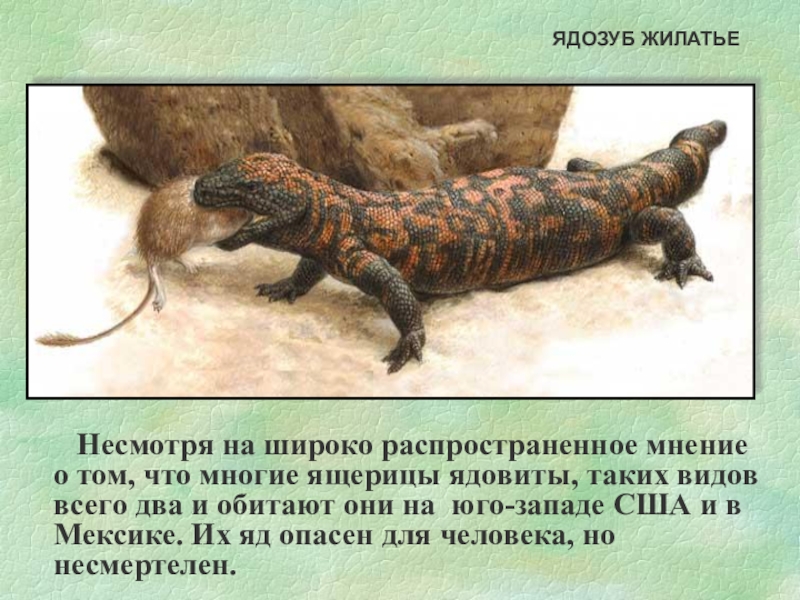 что многие ящерицы ядовиты, таких видов всего два и обитают они на юго-западе США и в Мексике. Их яд опасен для человека, но несмертелен.