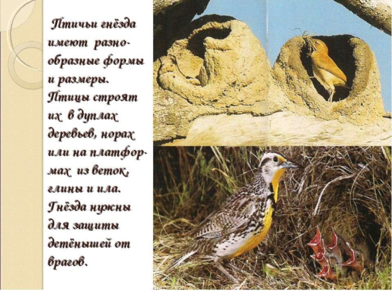 Презентация, доклад к уроку окружающего мира Птицы и птичьи гнёзда, 2 класса