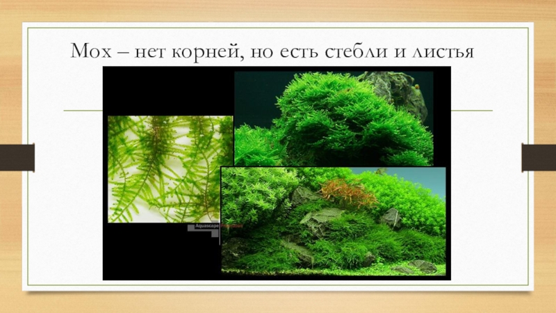Слайд 9Мох – нет корней, но есть стебли и листья