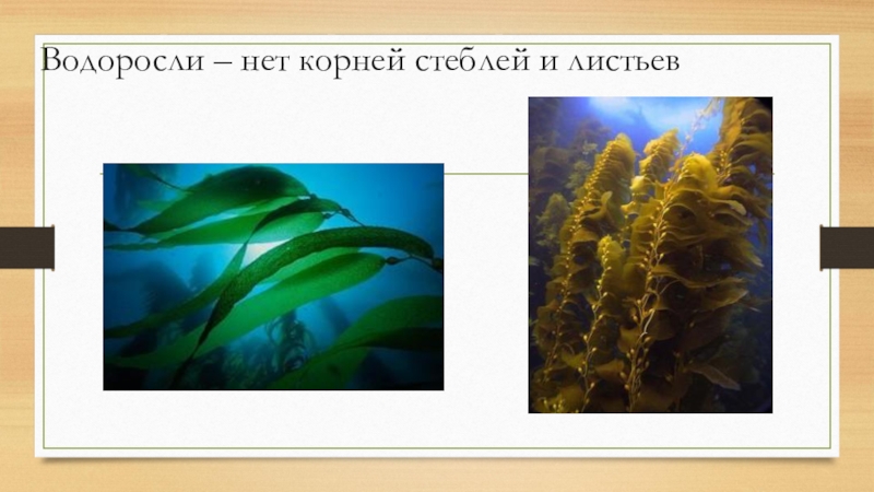 Слайд 8Водоросли – нет корней стеблей и листьев